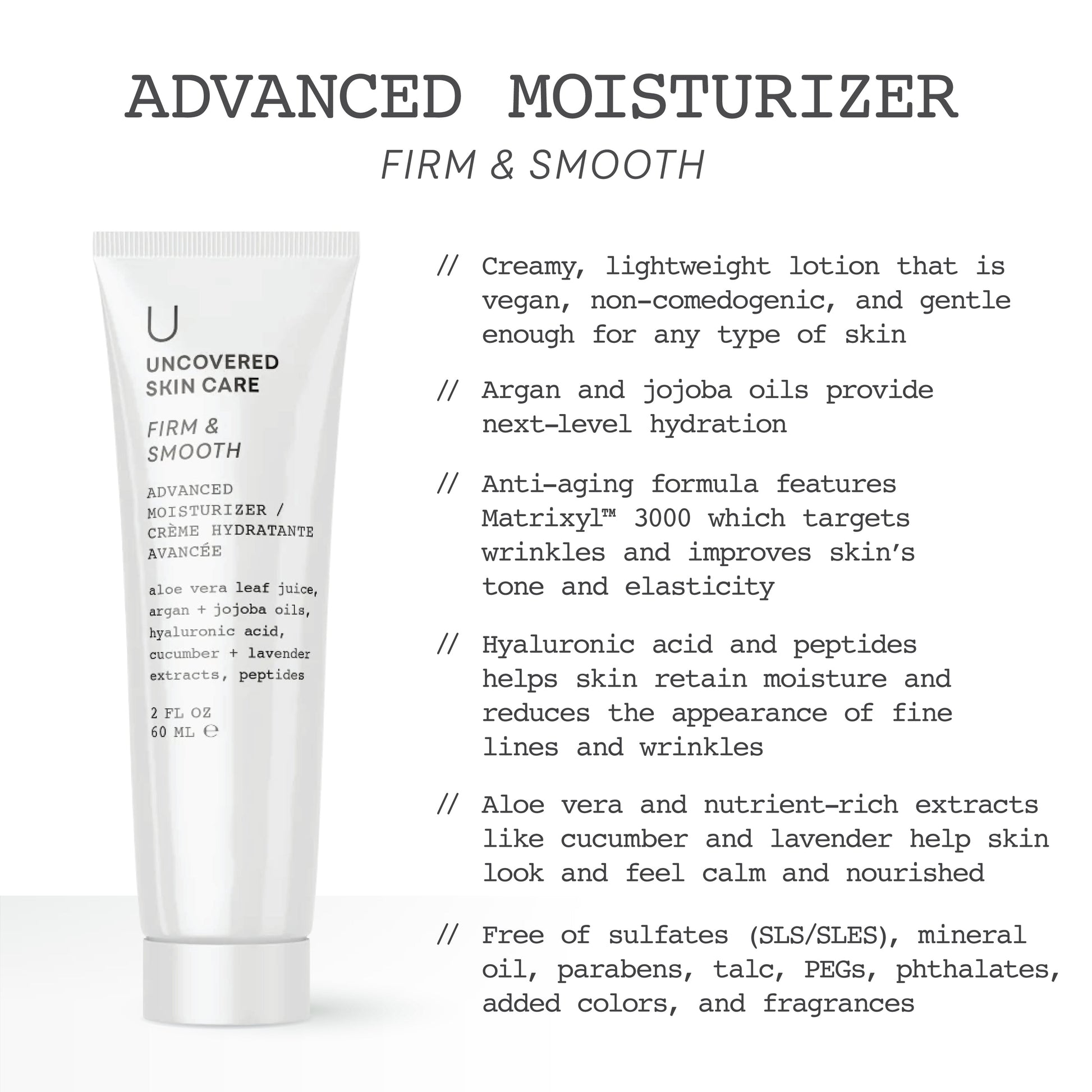 - Powerful hyaluronic acid and peptides help retain moisture and reduce the appearance of fine lines and wrinkles.