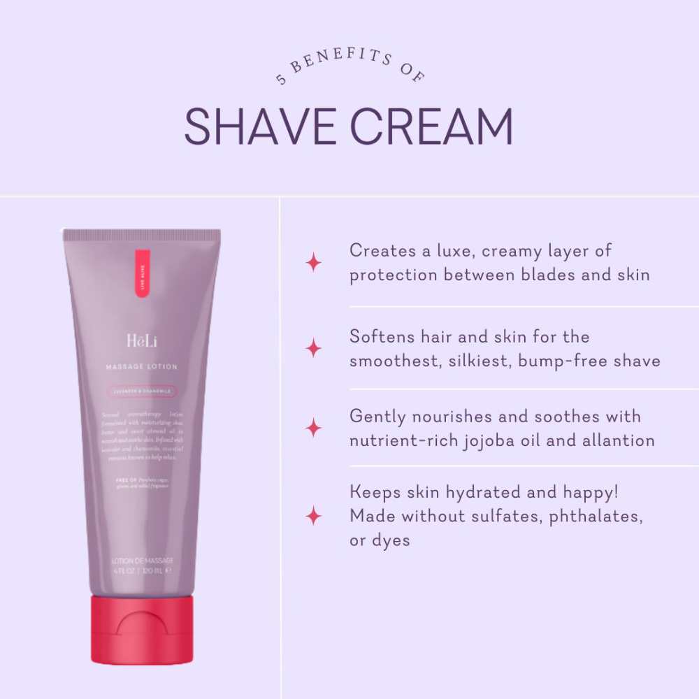 Smooth and protect your skin before and after shaving with HeLi Conditioning Shave Cream, a gentle, plant-derived formula inspired by nature. Conditioning Shave Cream is made with skin-loving ingredients known to hydrate while helping reduce post-shaving redness and irritation. Skin-softening emollients help prevent ingrown hairs and bikini bumps by conditioning the hair follicle prior to shaving. This HeLi shave cream smells like soft, dreamy lavender and gentle chamomile.