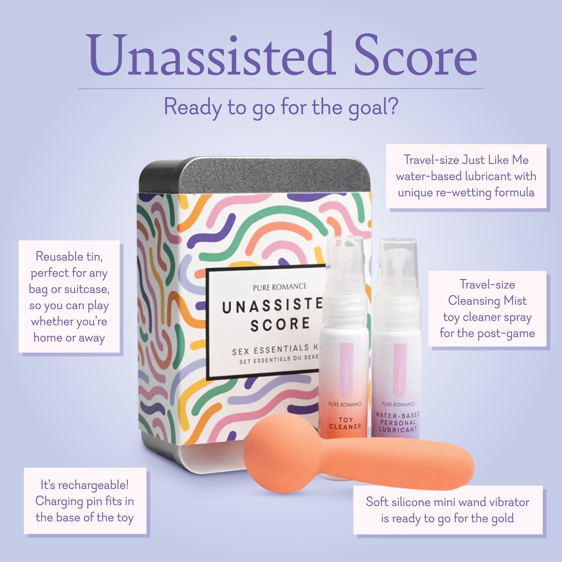 With Unassisted Score, you’ll be ready to go for the goal! Whether you’re a rookie or a pro, this kit will give you everything you need to make the crowd (or just yourself) go wild. So what’s the roster? A Mini Wand Vibrator perfect for teasing anywhere and everywhere, Just Like Me water-based lubricant, and Cleansing Mist Toy Cleaner Spray, so you’ve got all the essentials, whether you’re playing at home or away.